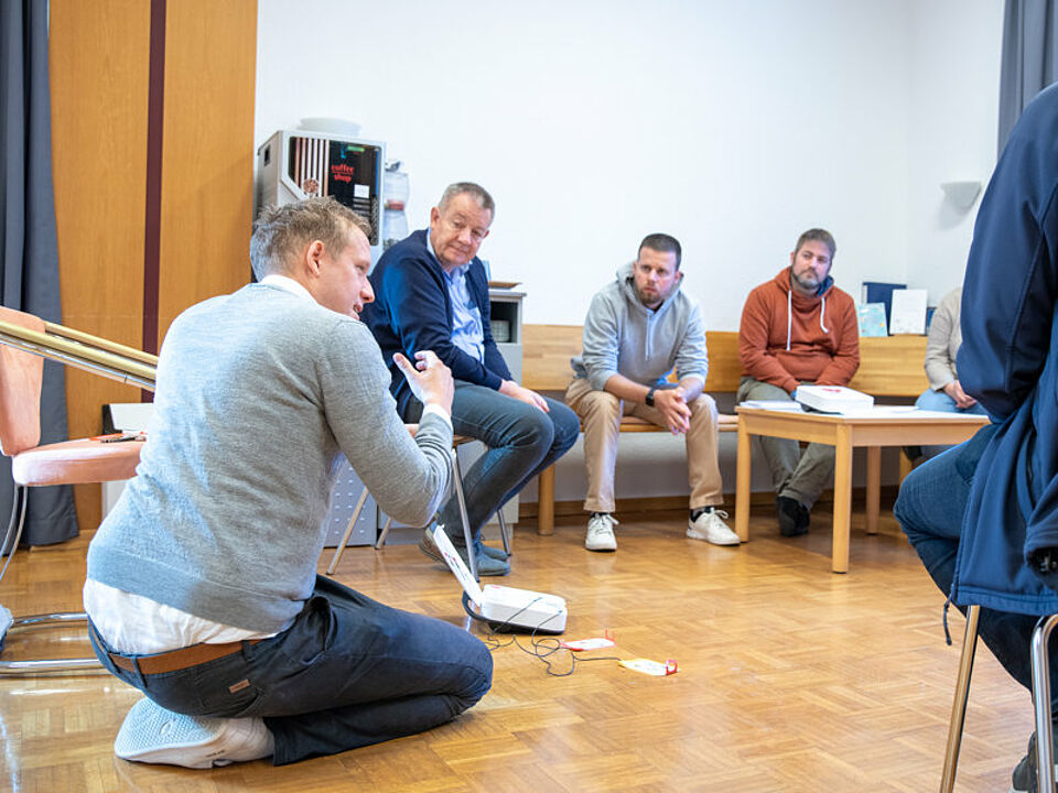 Anfang November wurde der Defibrillator offiziell durch Dominik Heilig von der Firma Stryker übergeben und in Betrieb genommen. Neun Mitarbeitende des CVJM und der Kirchengemeinde erhielten eine umfassende Einweisung, um für den Ernstfall gerüstet zu sein. Die Schulung, die wichtige Informationen zum Herz-Kreislauf-Stillstand (HKS), zur Reanimation und zum richtigen Einsatz des vollautomatischen Defibrillators vermittelte, schulte unter anderem die korrekte Drucktiefe und den Rhythmus bei der Herzdruckmassage. Marcel Burghardt, der Sohn des Geretteten, sieht im AED „eine zusätzliche Sicherheit“: „Der Fall meines Vaters zeigt, dass ein Herz-Kreislauf-Stillstand jederzeit auftreten kann.“
