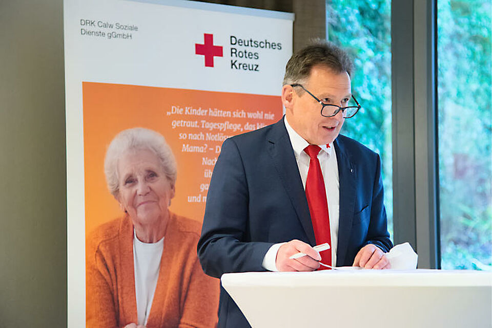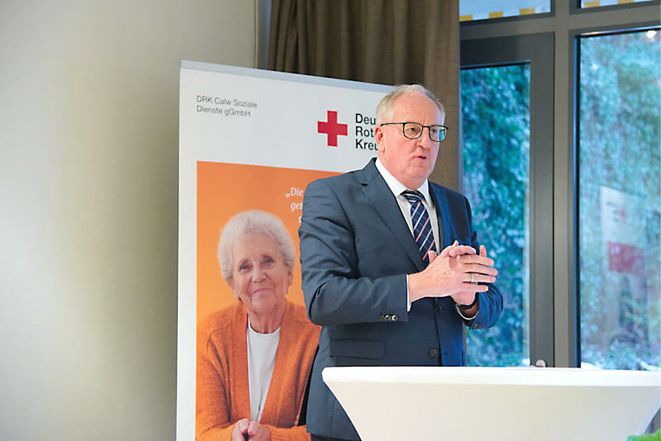 Mit dem DRK-Pflegezentrum habe sich bereits eine „Marke“ etabliert und man sei dankbar, mit dem DRK einen soliden Kooperationspartner in der Pflegelandschaft der Stadt Nagold gefunden zu haben, huldigte Oberbürgermeister Jürgen Großmann in seinem anschließenden Grußwort die Fortschritte. Es habe Mut auf beiden Seiten gekostet, diesen Schritt zu gehen, die Qualität der Pflegeeinrichtung spreche jedoch für sich. Diese werte zudem die pflegerischen Versorgungsmöglichkeiten in der Stadt erheblich auf. Der OB verwies auf die Gesamtentwicklung des Nagolder Pflegeangebotes und ist stolz, ein solch breites Spektrum anbieten zu können.
