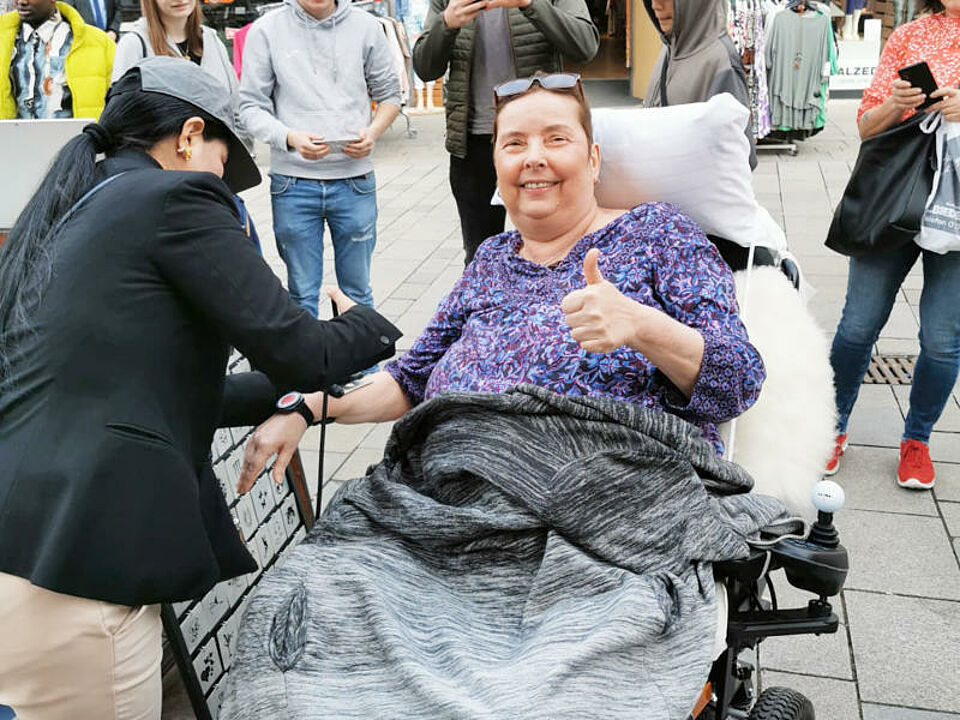 Für alle Beteiligten war es ein rundum gelungener Tag, doch vor allem unserem Fahrgast hat konnten wir ein großes Stück Lebensfreude schenken: „Sie ist im Verlauf des Nachmittags sichtlich aufgeblüht und hat den Ausflug und das Treffen mit ihrer Familie unwahrscheinlich genossen“, resümiert Sega. Als Erinnerung an diesen Tag ließen sich die Familie und unser Team Airbrush Tattoos in Herzform auf die Haut sprühen. Damit konnte unser Team allen Beteiligten auch symbolisch Momente schaffen, die für immer im Herzen bleiben werden.