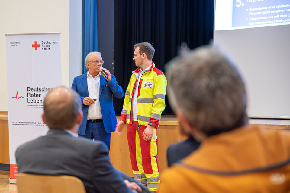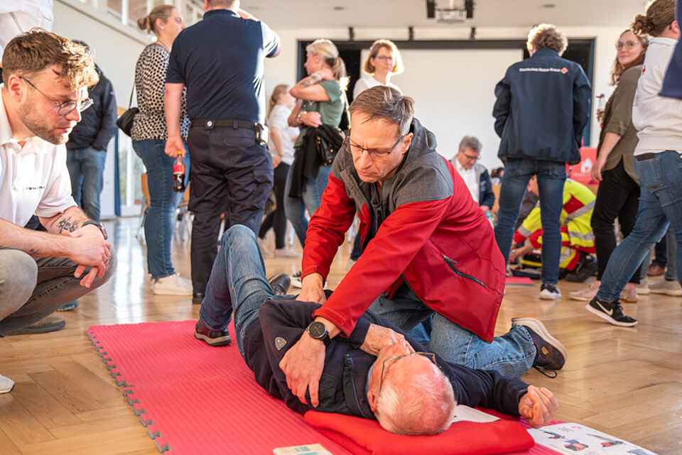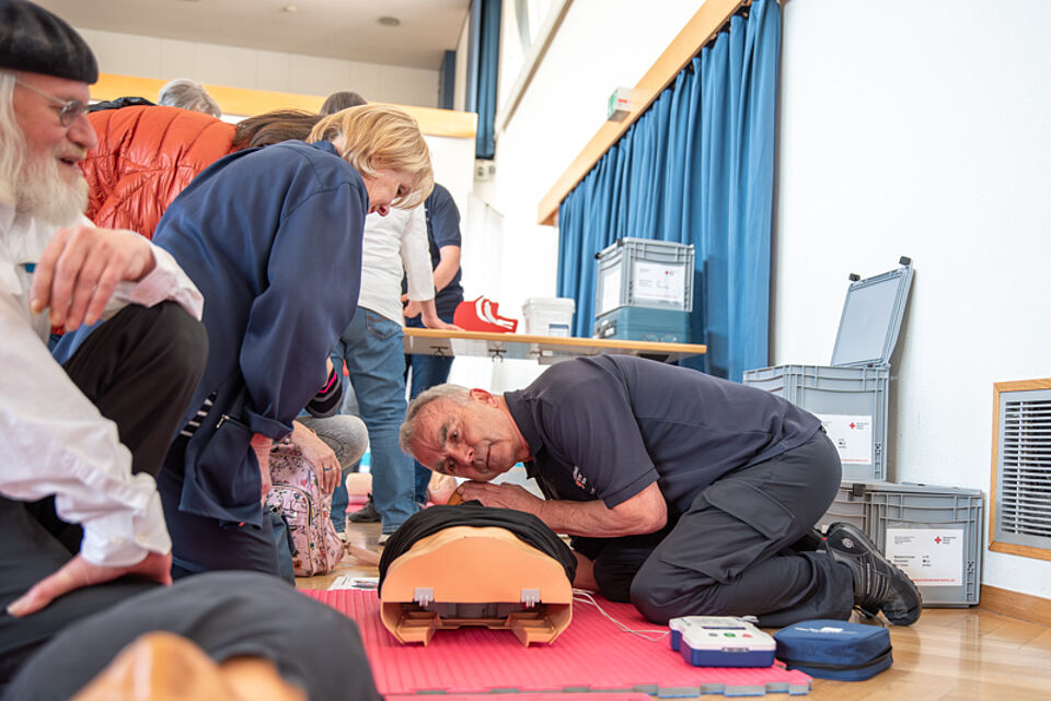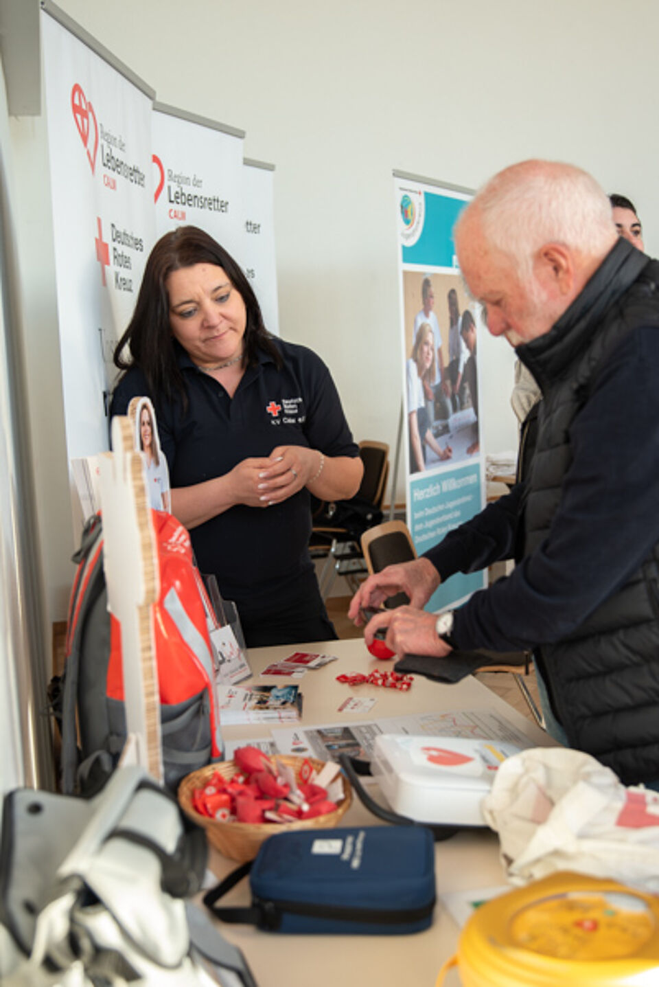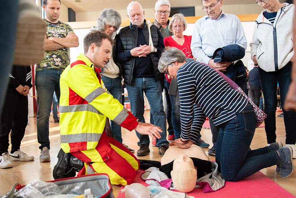 Bereits zum zweiten Mal in diesem Frühjahr veranstaltete die Stiftung für die Region - Sparkasse Pforzheim Calw gemeinsam mit dem DRK-Kreisverband Calw e.V. einen Abend rund um das Thema Wiederbelebung. Zahlreiche Interessierte scharten sich an einem Donnerstagabend um die Informationsstände der ehren- und hauptamtlichen Mitarbeitenden des DRK in und vor der Festhalle in Althengstett.