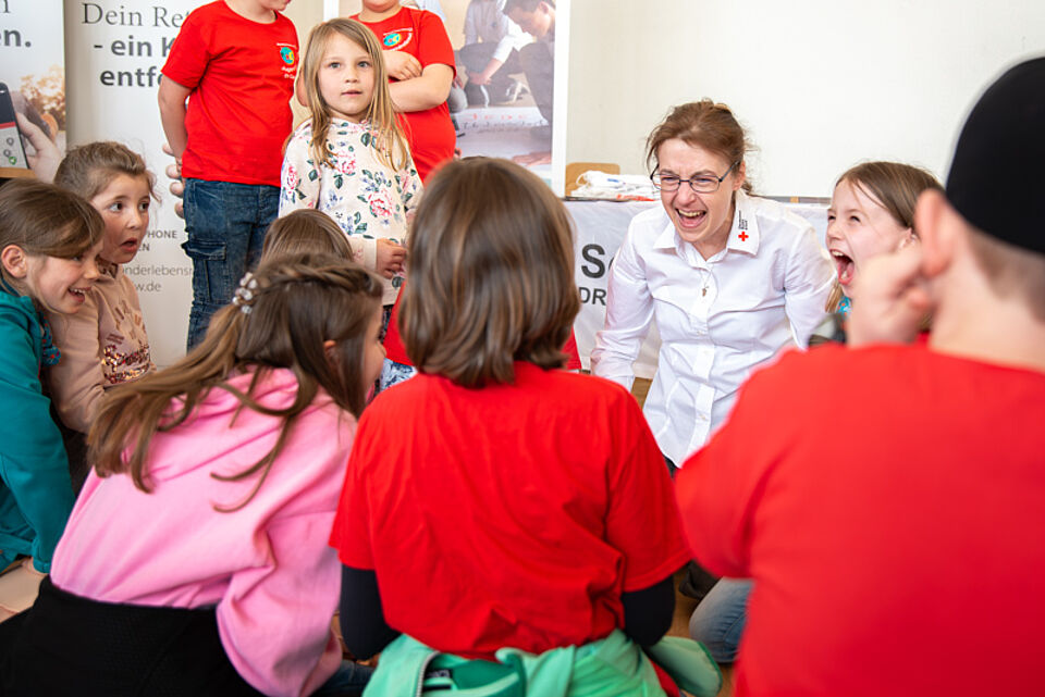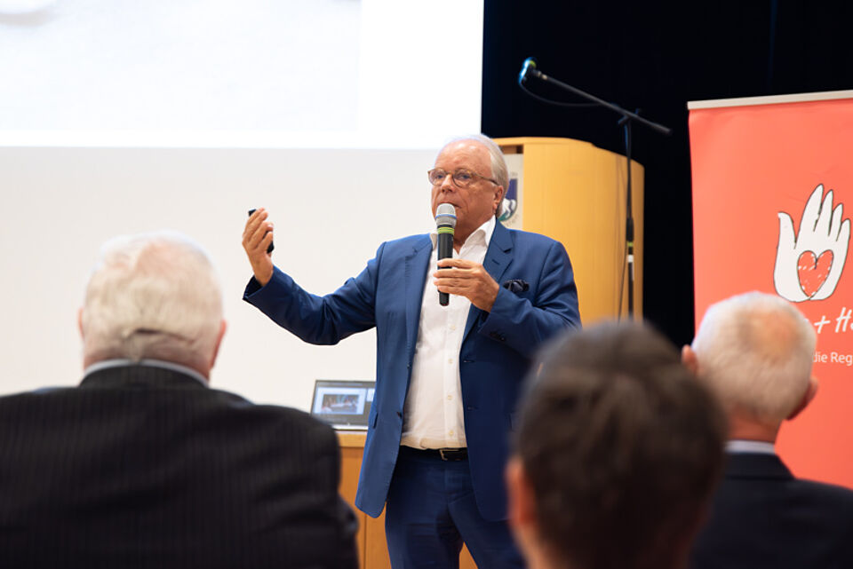 Natürlich waren alle dazu eingeladen, selbst Hand anzulegen und die Herz-Lungen-Wiederbelebung an den Puppen zu üben. Ganz nach dem Motto: Gib dem Herzen einen Stoß! Dass dies sogar schon Kinder können, bewies gleich eine begeisterte Schar Jugendrotkreuzler. „Reanimation ist kinderleicht“, unterstrich anschließend auch der Universitäts-Professor und DRK-Bundesarzt Prof. Dr. med. Bernd W. Böttiger. Man müsse nur die drei großen H beachten – „Hauptsache Heftige Herzdruckmassage“. Bereits zum zweiten Mal konnte man mit ihm einen der besten und versiertesten Rednern auf diesem Gebiet gewinnen.