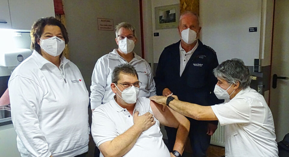 „Vor dem Hintergrund steigender Infektionszahlen sowie zunehmendem Andrang bei öffentlichen Impfangeboten haben wir uns zu einer eigenen Aktion für unsere Aktiven, den hauptberuflichen Rettungsdienst, den Kollegen der Freiwilligen Feuerwehr und dem THW entschlossen“, erläuterte DRK-Ortsvereinsvorsitzender Uwe Blaich.