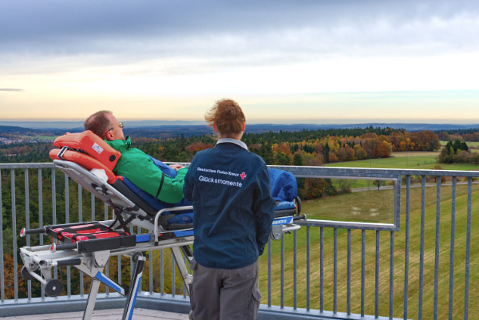 „Glücksmomente“ zu schaffen, das hat sich das gleichnamige Projekt und deren ehrenamtliche Helferinnen und Helfer des DRK-Kreisverbandes Calw e.V. auf die Fahnen geschrieben. Es ermöglicht, schwerstkranken oder Menschen in einer schwierigen Lebensphase einen Herzenswunsch zu erfüllen. Meist sind dies auf den ersten Blick einfache Dinge. So wie der Wunsch von Norbert, seine Heimat vom Schömberger Aussichtsturm „Himmelsglück“ einmal von oben zu betrachten. Noch einmal eine Aussicht zu genießen und anschließend das Lieblingsrestaurant zu besuchen. Doch für unsere Patienten sind gerade diese scheinbar einfachen Dinge von besonderem Wert.