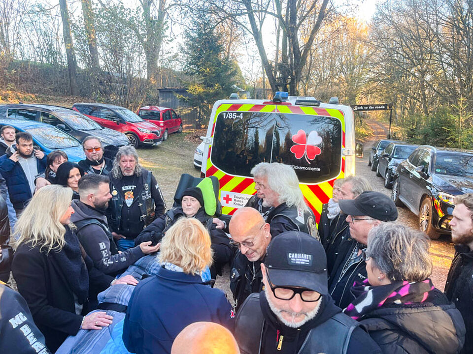 Zum Abschluss stand ein besonders wichtiger Wunsch auf dem Plan: der Besuch bei seinen Motorradkameraden der MC Beret’s im Clubhaus in Calw-Stammheim. Dort kamen nicht nur die alten Weggefährten zusammen, sondern auch seine Enkel. Gemeinsam schauten sie Fotos und Videos an, lachten, erinnerten sich, staunten. Die Biker konnten kaum fassen, dass diese Fahrt so kurzfristig möglich wurde – und wir konnten spüren, wie tief dieser Moment wirkte. Die Freude war so greifbar, dass man sie hätte einpacken und mit nach Hause nehmen können.