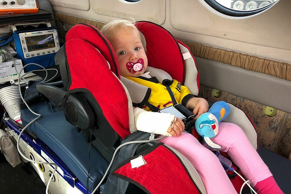 Das Krankenhaus in Padua versorgte die kleine Alina intensivmedizinisch. Die Mutter ist ein Mitglied des DRK-Kreisverbandes Calw e.V. – und genau das war das Glück. Durch die Mitgliedschaft der Mutter ist auch das Kind über den Verband beim DRK-Flugdienst in Düsseldorf für solche Fälle versichert. Es war nur ein Anruf beim Flugdienst in Düsseldorf notwendig, damit die Mitarbeiter der Leitstelle mit den notwendigen Vorbereitungen begannen. Drähte liefen heiß, E-Mails wurden geschrieben und ein Notfallplan erarbeitet. Die freiwillige Mitgliedschaft beim DRK beinhaltet unter anderem eine garantierte weltweite Rückholung aus dem Ausland, wenn es medizinisch sinnvoll ist oder ein Klinikaufenthalt länger als 14 Tage dauert. Am Ende fiel die Entscheidung gemeinsam mit den Spezialisten des DRK-Flugdienstes, die kleine Alina aus Italien nach Pforzheim in die Kinderklinik zu transportieren, da in Deutschland weitere medizinische Behandlungen erfolgen sollten. Alina wurde wenige Tage nach dem Unfall von einem Pädiater-Team, das mit einem Ambulanzflugzeug von Frankfurt nach Venedig flog, im Krankenhaus in Padua abgeholt. Nach dem zweistündigen Rückflug nach Karlsruhe auf den Baden-Airpark, bei dem die Mutter mit an Bord sein konnte, stand dort ein Einsatzfahrzeug des Roten Kreuzes bereit, um Alina und ihre Mutter nach Pforzheim zu verlegen. Alinas Familie war glücklich über die schnelle und unkomplizierte Hilfe und freut sich, dass es gesundheitlich bergauf geht und die Verletzungen hoffentlich ohne bleibende Schäden abheilen werden.