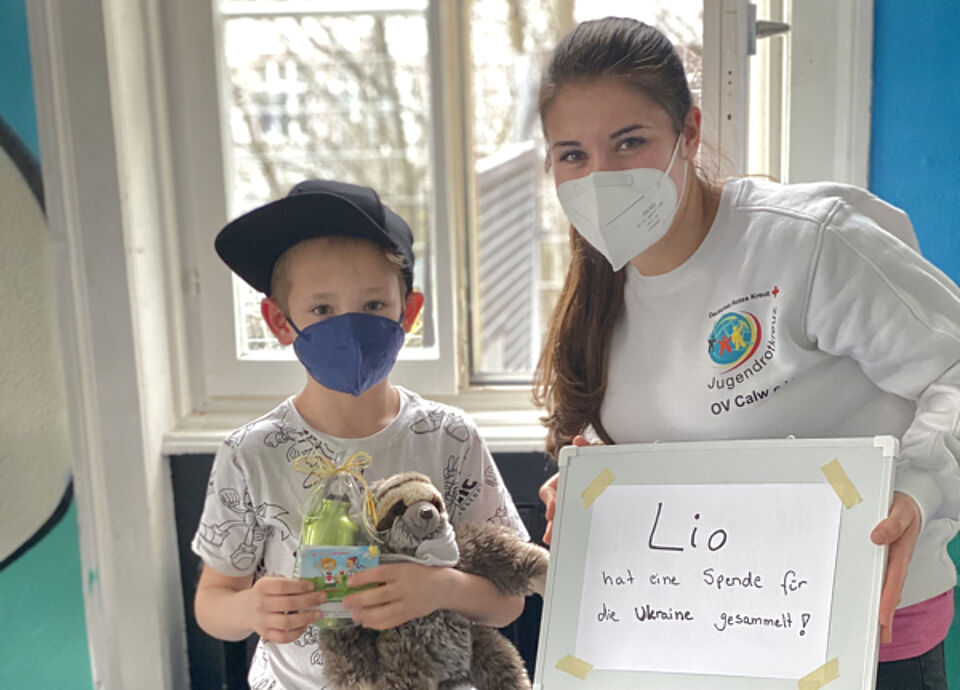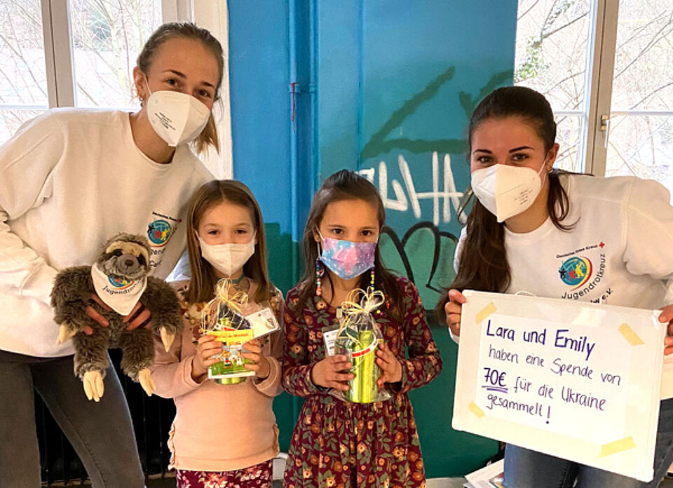 Emily Geißler und Lara Drost, beide Mitglieder des Jugendrotkreuzes (JRK) in Calw, ließen dem guten Willen Taten folgen. Mit viel Engagement und Selbstsicherheit verkauften die beiden siebenjährigen Mädchen in Stammheim Limonade, Selbstgebasteltes und Spielsachen. Den Erlös von 70€ haben sie dann der Ukrainehilfe des Deutschen Roten Kreuzes gespendet und in einer JRK-Gruppenstunde von ihrer Unterstützung berichtet.