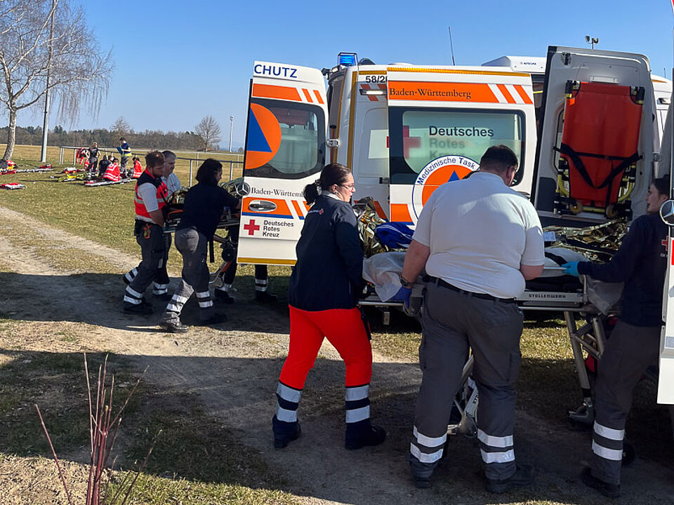 Nachdem die Sanitätskräfte des DRK die Patienten stabilisiert hatten, übernahm die Bereitschaft des DRK-Ortsvereins Neubulach/Neuweiler e.V. den Weitertransport. Mit zwei Notfallkrankenwagen des Katastrophenschutzes wurden die Verletzten ins Klinikum Nagold gebracht, wo das in die Übung eingebundene Notaufnahmepersonal bereitstand.