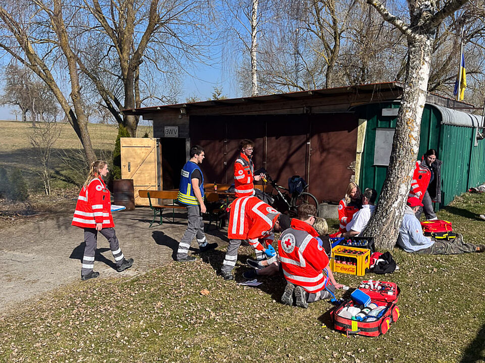 Nach einer kurzen Verschnaufpause und Zeit zur Kameradschaftspflege führte der nächste Einsatz die DRK-Bereitschaften Nagold/Wildberg, Rohrdorf/Ebhausen und Neubulach/Neuweiler nach Vollmaringen. Dort hatte es infolge eines Stromausfalls während einer Feier im Bauwagen eine Verpuffung gegeben. Ein Ofen, der zur Beheizung des Raumes genutzt wurde, war fehlerhaft belüftet, wodurch sich eine gefährliche Gasansammlung entzündete.
