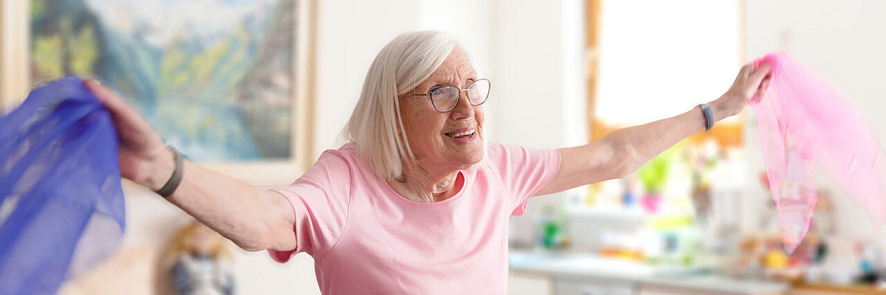 Im hohen Alter wird die Beweglichkeit des Körpers durch ganz normale Verschleißerscheinungen eingeschränkt. Regelmäßige und gezielte Bewegungsübungen zu Hause leisten einen wertvollen Beitrag, um Altersprozesse zu verzögern und die Lebensqualität zu erhalten.