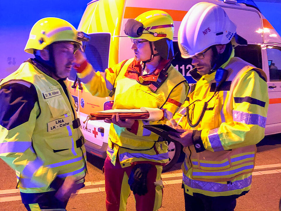 Im Bad Wildbader Meisterntunnel wurde Mitte November ein hochkomplexes Unfallszenario nachgestellt, um die Zusammenarbeit und Abläufe bei einem sogenannten MANV (Massenanfall von Verletzten) zu trainieren. Insgesamt 192 Einsatzkräfte von Feuerwehr, Rettungsdienst und ehrenamtliche Einsatzformationen des DRK aus dem Landkreis Calw waren an der Großübung beteiligt. Ziel war es, die Koordination und Zusammenarbeit zwischen den beteiligten Organisationen zu optimieren.