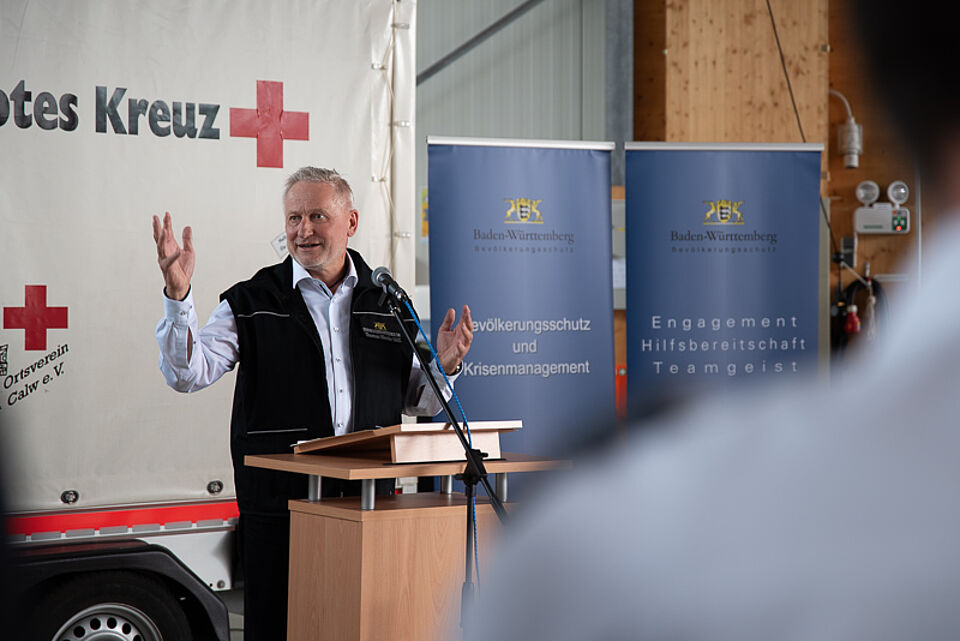 Wichtig bei der Stärkung des Bevölkerungsschutzes sei die Einbeziehung der örtlichen Verwaltungen, gab der Calwer Oberbürgermeister Florian Kling zu bedenken. Denn nur wenn die Zusammenarbeit mit den Städten und Kommunen auf Augenhöhe stattfinde, könne die Prävention und die Hilfeleistung im Katastrophenfall gut funktionieren.