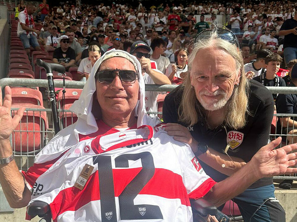 Anfang August durften unsere ehrenamtlichen Glücksmomentebringer Wolfgang und Paulo einem ganz besonderen Wunsch nachkommen: Ein langjähriger VfB Stuttgart-Fan konnte nach mehreren Jahren endlich wieder Stadionluft schnuppern. Die Fahrt startete zur Mittagszeit am stationären Hospiz St. Michael in Nagold. Schon vor dem Hospiz wurden Wolfgang und Paulo von ihrem Fahrgast, der voller Vorfreude sein VfB-Trikot trug, und dessen Sohn Michael herzlich begrüßt.